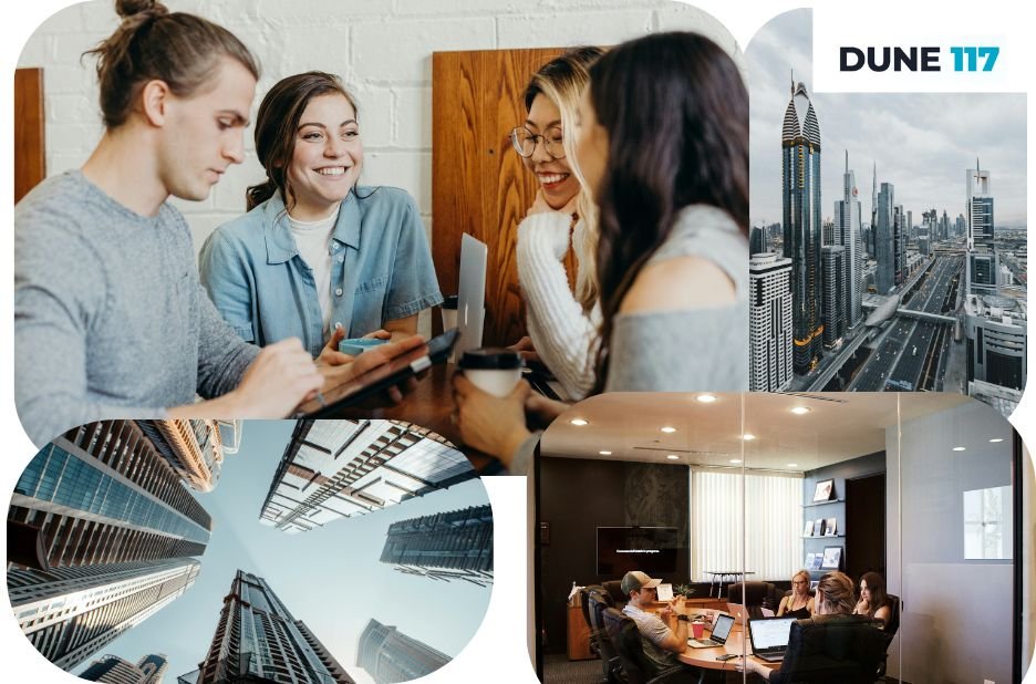 Servicios de consultoría experta en configuración empresarial para empresarios de Dubai y los Emiratos Árabes Unidos, que guían la formación de empresas, licencias, visas y operaciones bancarias con facilidad, proporcionados por Dune 117 Fz LLC para un crecimiento empresarial sin problemas.
